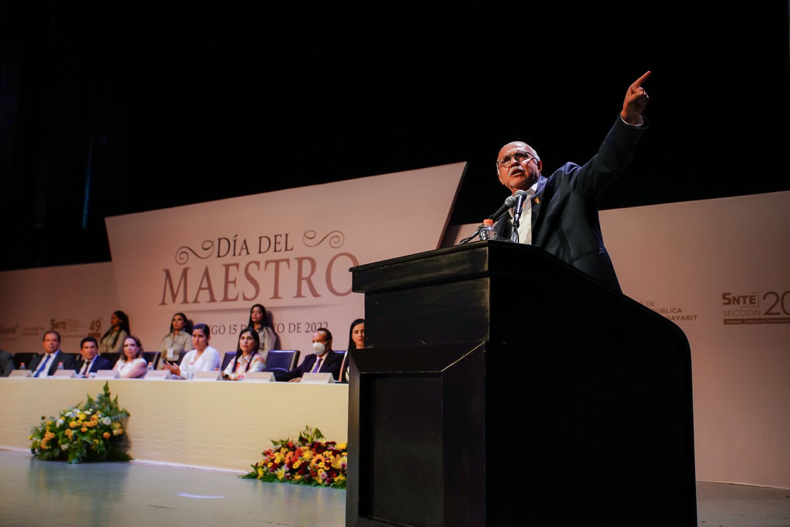 El gobernador del estado, Miguel Ángel Navarro Quintero, asistió la mañana de este domingo al acto de entrega de reconocimientos y recompensas a personal que cumplió 28, 30, 40 y 50 años de servicio a la educación, en el marco del Día de los Maestros y Maestras. Ahí refrendó su eterno y firme compromiso con la educación en Nayarit.