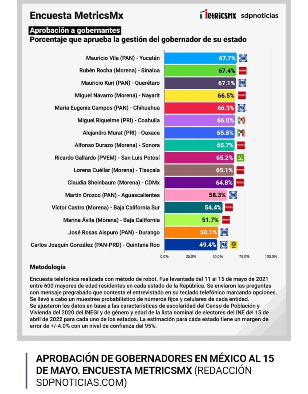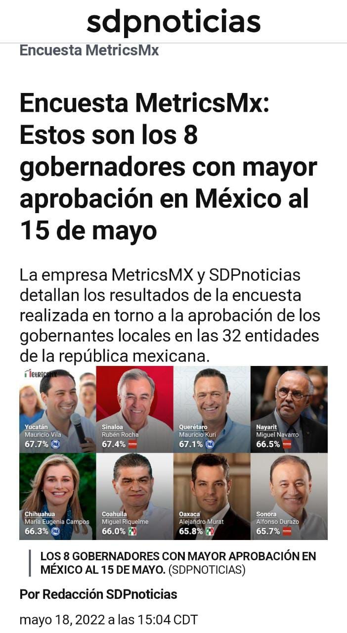 “Todos los reconocimientos que da la misma ciudadanía cuando se hacen encuestas son reconocimientos al trabajo solidario y hermanado que hemos logrado los nayaritas a lo largo de estos meses. En mucho agradezco a MetricsMX y SDP Noticias esta nota, pero en más agradezco el espíritu de lucha de nuestra gente para transformar a Nayarit”.