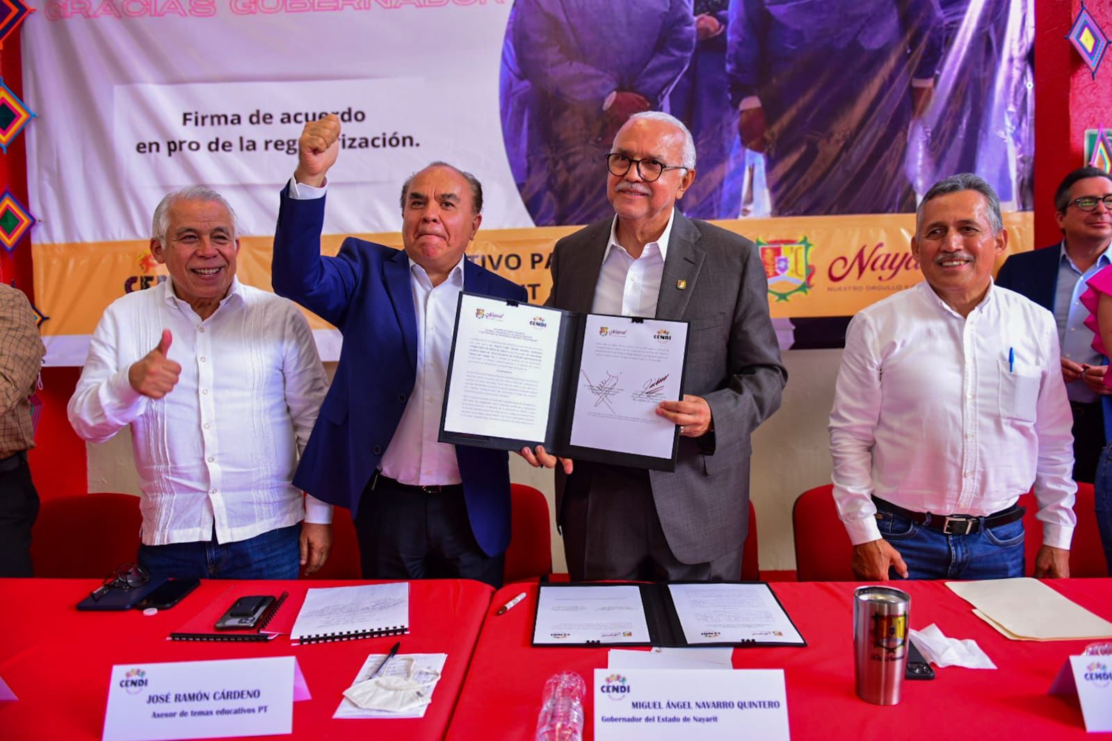 “Hoy firmé el convenio que hará que los CENDIS Paulo Freire se incorporen a la Secretaría de Educación de Nayarit. Con ello, vamos a tener presupuesto para mantener la infraestructura y los salarios de las y los maestros en estos centros educativos, que dan atención a los hijos de madres trabajadoras entre los 45 días y los 6 años de edad. No más incertidumbre para las y los 375 educadores: ¡sí al respeto a sus derechos! ¡Sí al derecho social para todas y todos!”