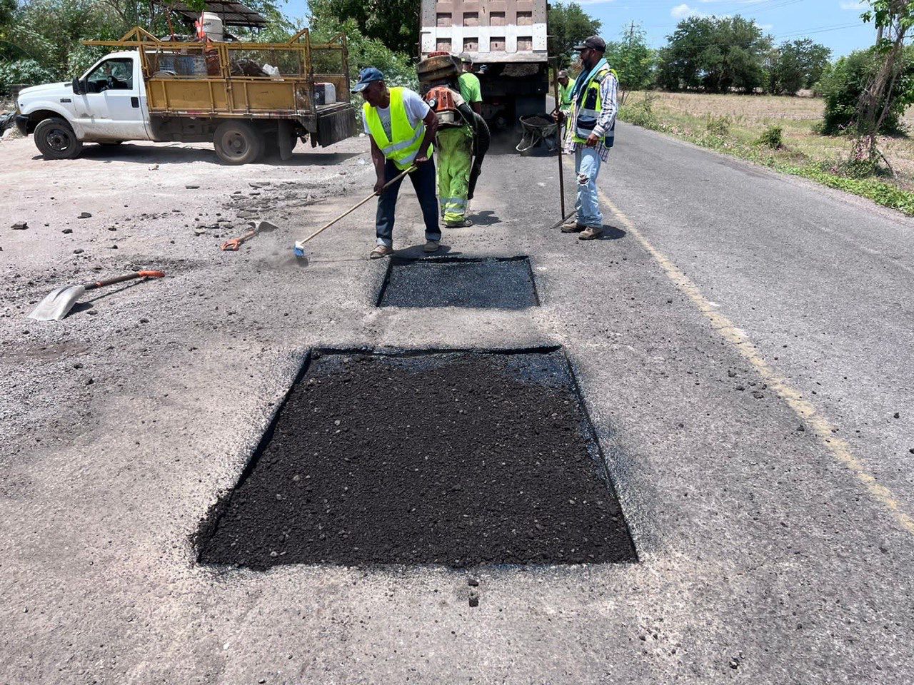 “Para evitar el deterioro prematuro causado por las lluvias en el camino de Peñas a Santiago, el equipo de la Secretaría de Infraestructura está bacheando de manera intensiva la carpeta asfáltica. ¡Las carreteras de Nayarit son nuestra vía al desarrollo!”