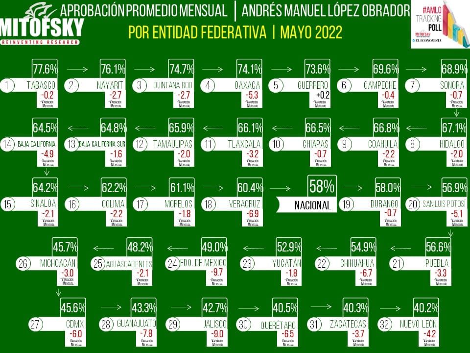 Nayarit es el estado que más quiere al presidente de México, Andrés Manuel López Obrador después de su tierra natal Tabasco. Así lo demostraron los resultados de la encuesta Mitofsky, los cuales fueron dados a conocer por la reconocida casa encuestadora.