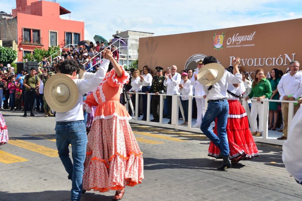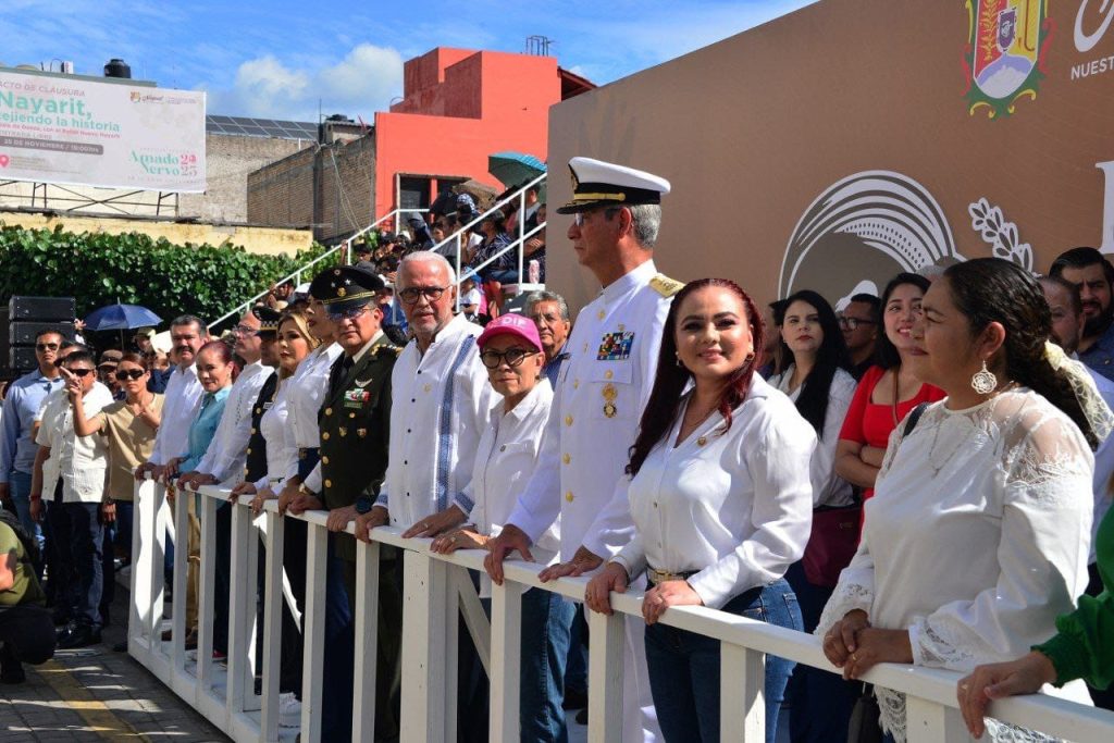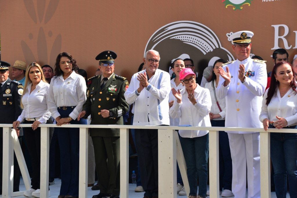 El ejecutivo estatal estuvo acompañado por las presidentas de los poderes Legislativo y Judicial, Nataly Tizcareño y Aracely Ávalos respectivamente, además de autoridades civiles, militares y el entusiasmo de cientos de nayaritas que aplaudieron a cada uno de las y los participantes.
