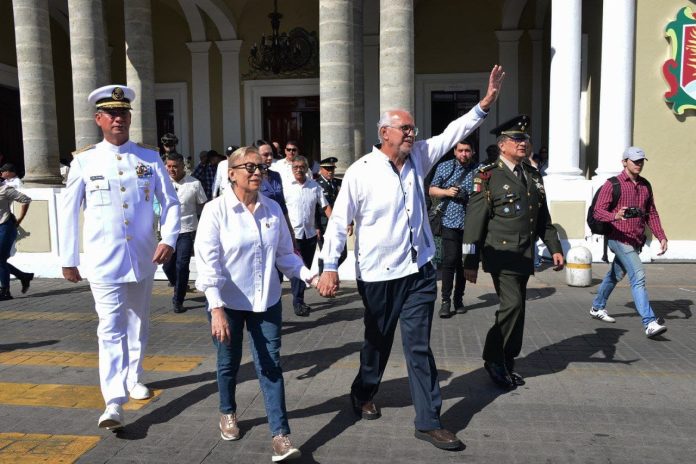 Tepic, Nayarit. 20 de noviembre de 2023.- El gobernador del estado, Miguel Ángel Navarro Quintero, acompañado de su esposa, la presidenta del Sistema DIF Nayarit, Beatriz Estrada Martínez, presenció el tradicional desfile Cívico-Deportivo del 20 de noviembre, por el CXIII aniversario de la Revolución Mexicana, con el tema “Inclusión Social”.