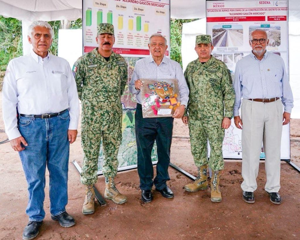 El gobernador del estado, Miguel Ángel Navarro Quintero, acompañado del presidente de la República, Andrés Manuel López Obrador; de personal residente de la obra, del Ejército Mexicano; y del director general de la CONAGUA, Germán Martínez Santoyo, supervisaron el avance en la construcción del Canal Centenario, pieza central del Distrito de Riego “Alejandro Gascón Mercado”, en el cual cada vez están más cerca de concluirse los trabajos de esta obra que es toral en el desarrollo del campo nayarita y la esperanza de las y los productores del estado.