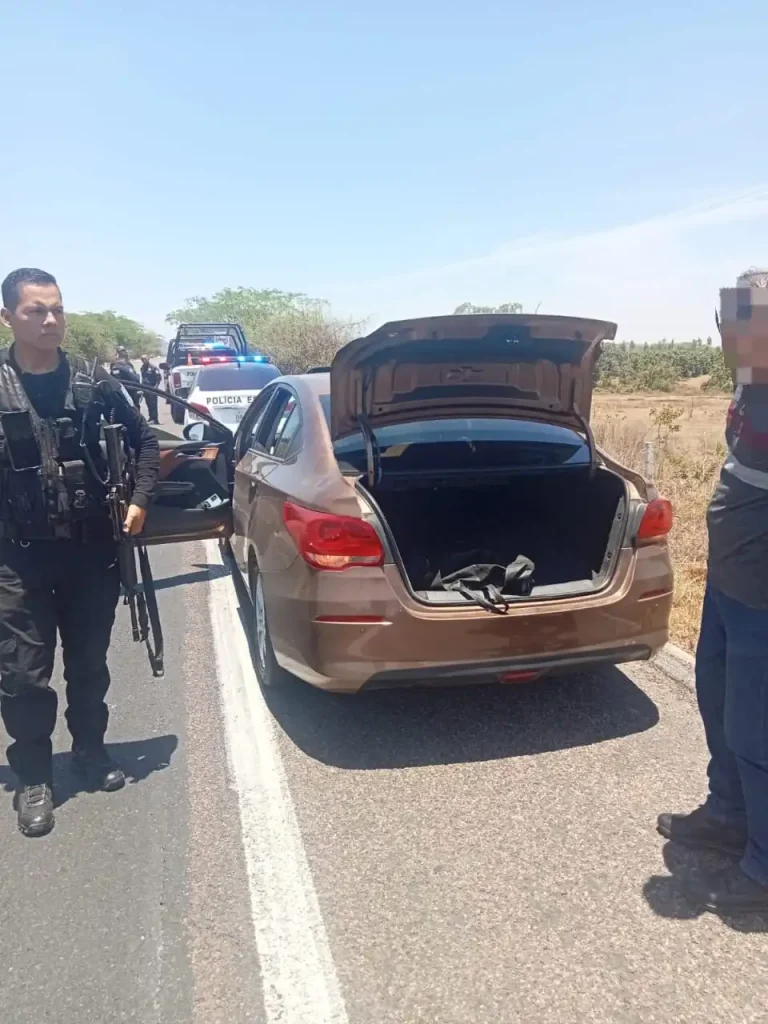 Los testigos proporcionaron una descripción detallada del auto a la operadora del 911, quien alertó de inmediato a las autoridades. Se desplegó un operativo conjunto que derivó en una persecución, culminando en la captura de los delincuentes cerca de Rosamorada en la autopista hacia Mazatlán.
