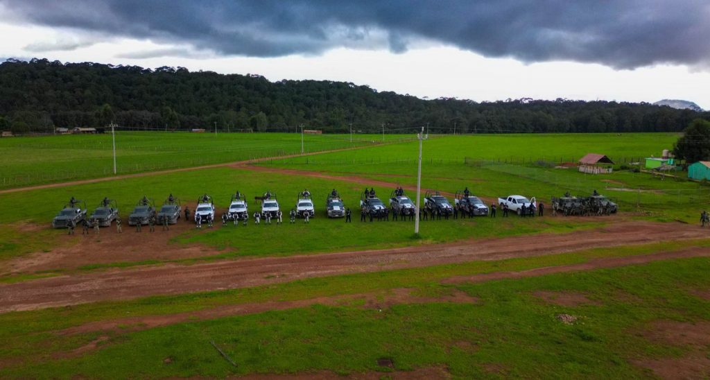 Los elementos de la Policía Estatal y las fuerzas federales están llevando a cabo acciones conjuntas para mantener la seguridad y garantizar la libertad, la protección de bienes y el respeto a los derechos humanos de la población del citado municipio. Estas acciones se enmarcan dentro de la Estrategia Nacional de Seguridad Pública y la Política de Cero Impunidad del Gobierno Federal.