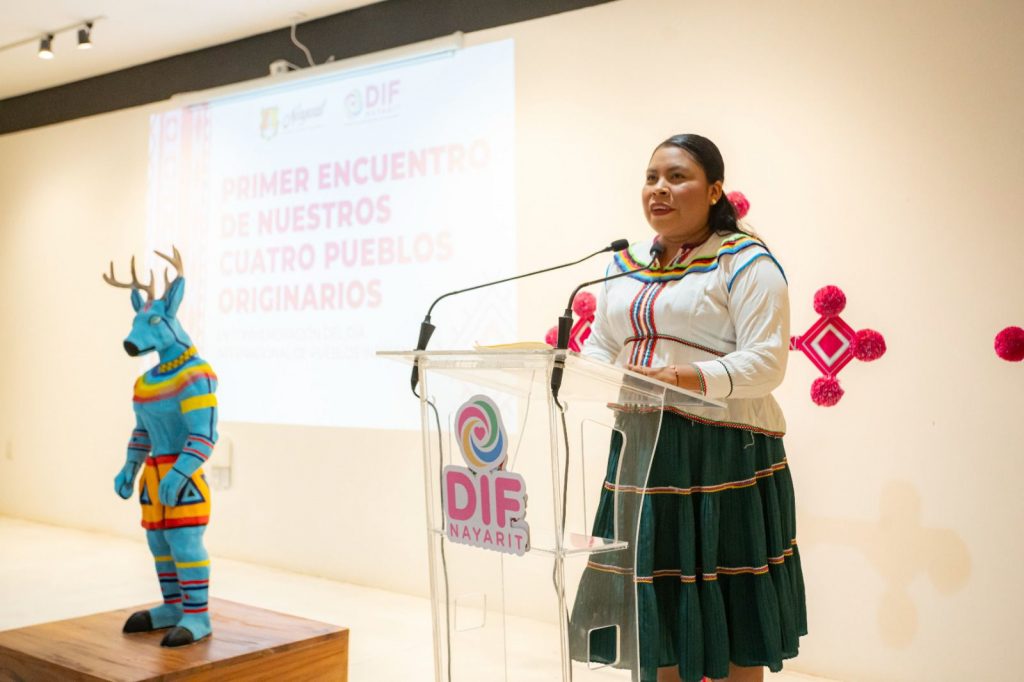 Tepic, Nayarit; 9 de agosto de 2024.- La doctora Beatriz Estrada Martínez, presidenta del Sistema DIF Nayarit, encabezó el «Primer Encuentro Intercultural de Nuestros Cuatro Pueblos Originarios» en el marco del Día Internacional de los Pueblos Indígenas. El evento se llevó a cabo en la Galería Artesanal Nayarte, ubicada en el parque La Loma de Tepic.