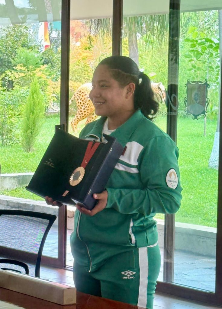 El gobernador del estado de Nayarit, Miguel Ángel Navarro Quintero, junto a la presidenta del DIF Nayarit, doctora Beatriz Estrada Martínez, recibió y reconoció a la atleta paralímpica Osiris Machado por su destacada participación en competencias internacionales. La deportista agradeció el firme apoyo del gobierno estatal, señalando que la confianza depositada en ella fue clave para su éxito.