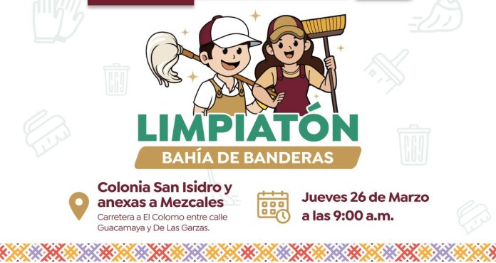 Con el objetivo de fortalecer las acciones de limpieza y prevenir enfermedades, el Gobierno Municipal de Bahía de Banderas, llevará a cabo una nueva jornada del programa Limpiatón este próximo jueves 26 de marzo en la colonia San Isidro y zonas anexas a Mezcales.